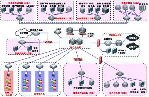 保護用戶網絡免遭安全威脅:通過防火墻安全模塊保障各部門業務隔離,可以向下屏蔽網絡攻擊,可以保證網內運行的終端PC都為符合安全性檢查標準,免受網絡攻擊。